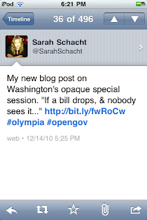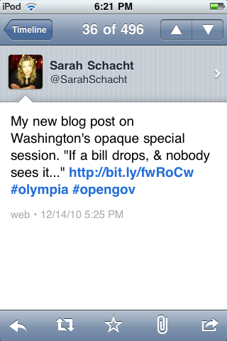 SarahSchacht: @emmettoconnell I don’t think you read my blog post; I documented a lack of public access to the budget bill, not transparency across WA.
