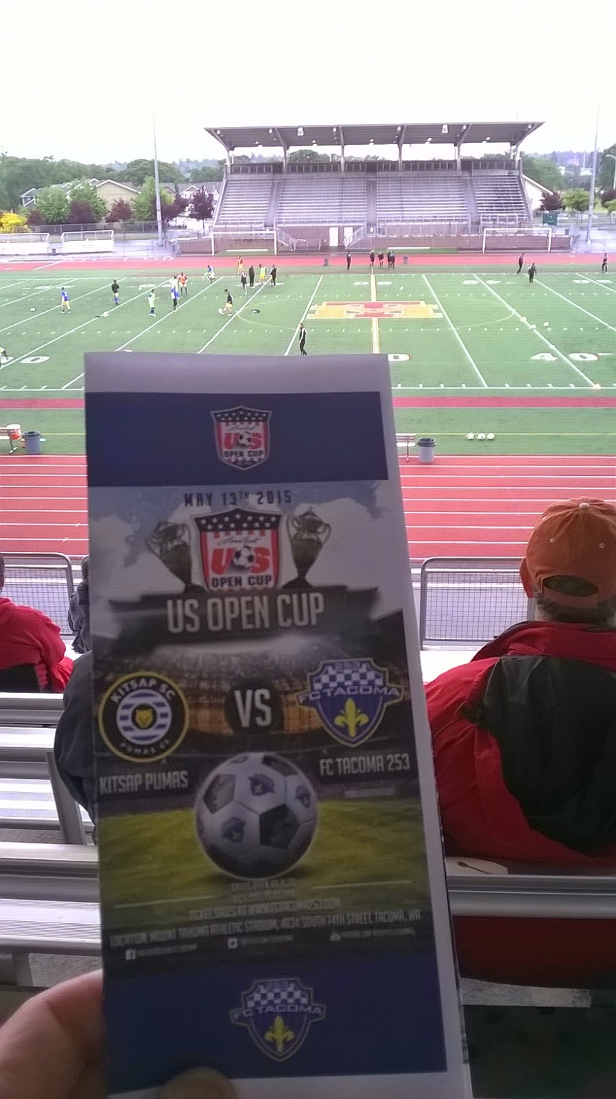 I was on hand for about 65 minutes of the 5-2 blowout of FC Tacoma 253 by the much better organized Kitsap Pumas. Enough about the US Open Cup being the real US Open.