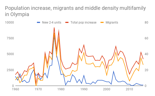 Between 1960 and 1981 Olympia averaged 6.2 two to four-unit buildings per thousand of population increase.