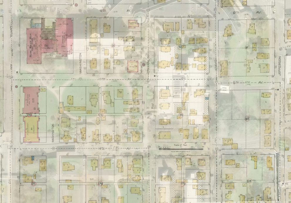 So much credit for this post and line of thinking to Brian Hovis, who years ago spent a great deal of time overlaying old Sanborn maps onto modern Olympia and then gifting that work to us: https://olympiahistory.org/the-sanborn-overlays/