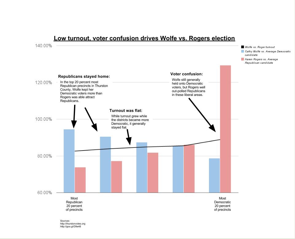So, this map showing Gunn winning in both rural south county and urban Olympia illustrates here campaign bringing together these camps. This is not a traditional election map in Thurston County, by the way.