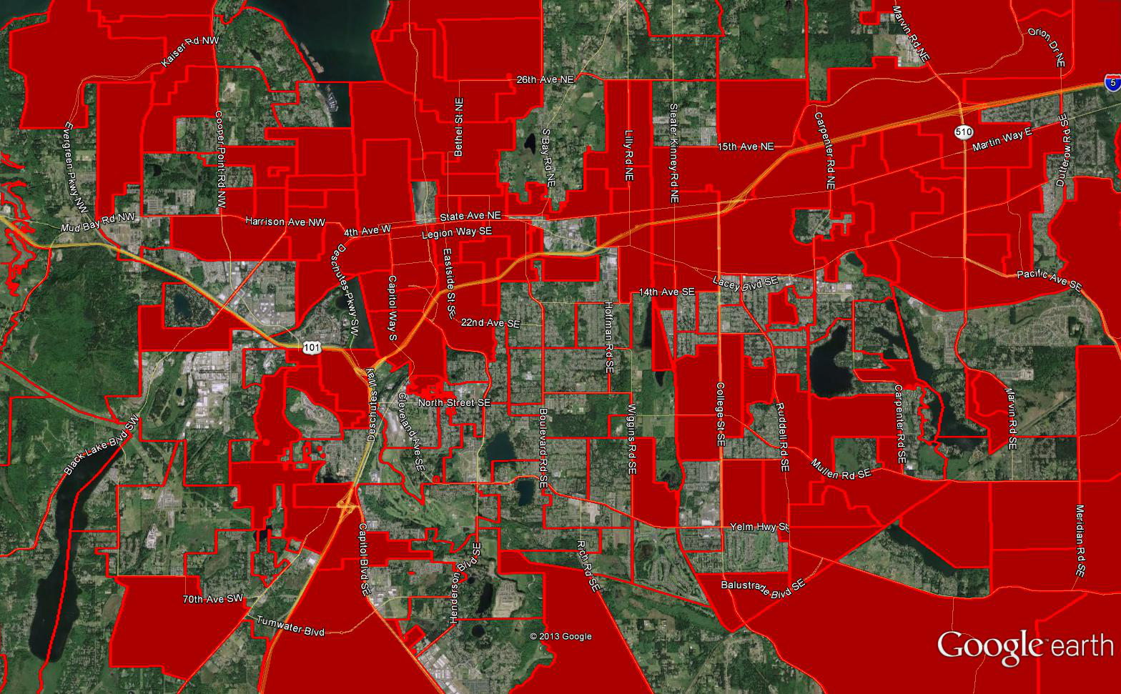 Coincidentally for us, its also easy to find this mapped out in the early results. The most traditionally conservative (Republican) areas of Thurston County are in the south of the county. The most traditionally liberal (Democratic and left of Democratic) areas are in urban Olympia and the west side.